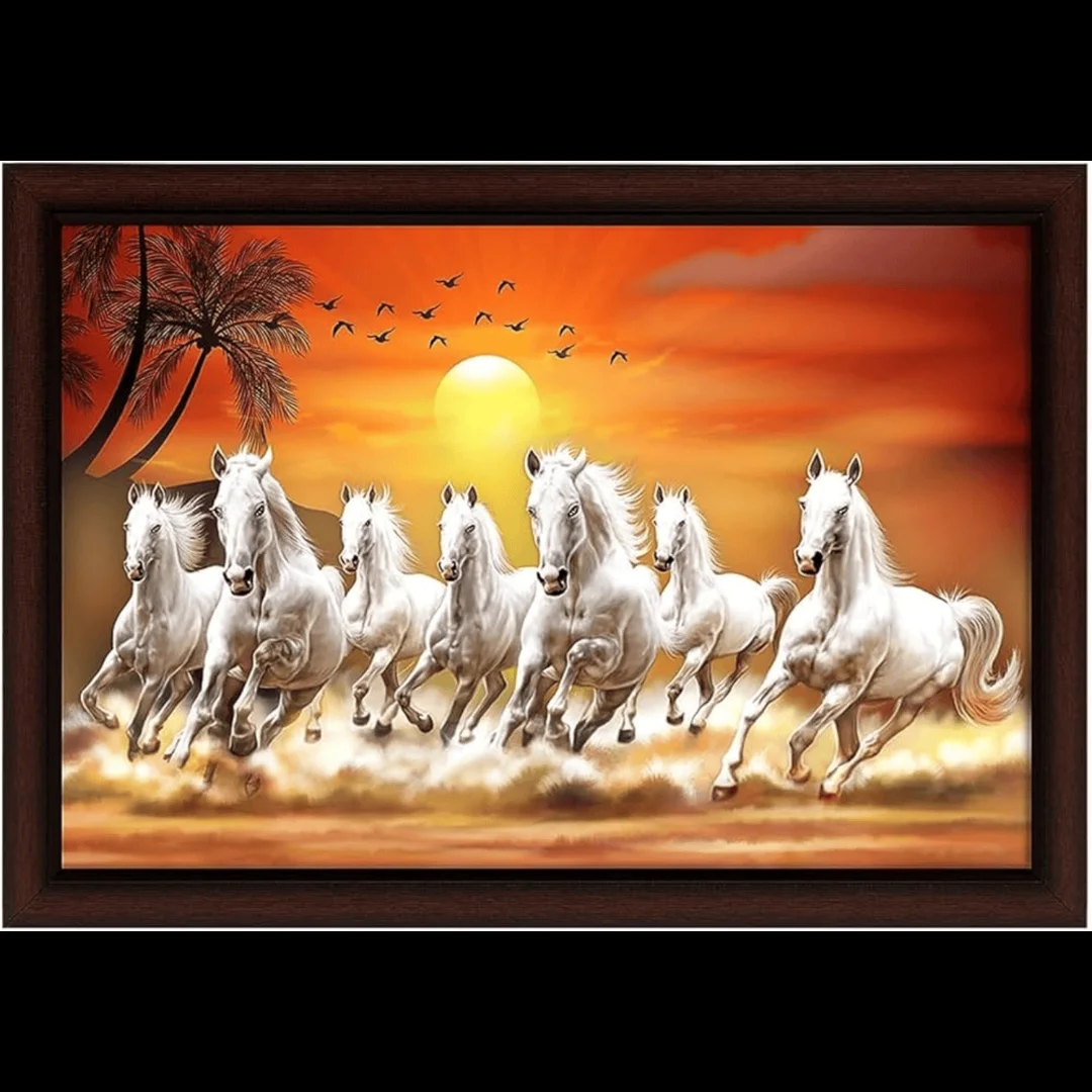The picture of seven galloping horses brings positivity in one's life and remove the negative vibes. According to Vastu Shastra, this lucky painting balances energy in one's house and seven horses are considered to symbolize peace, success, and progress.